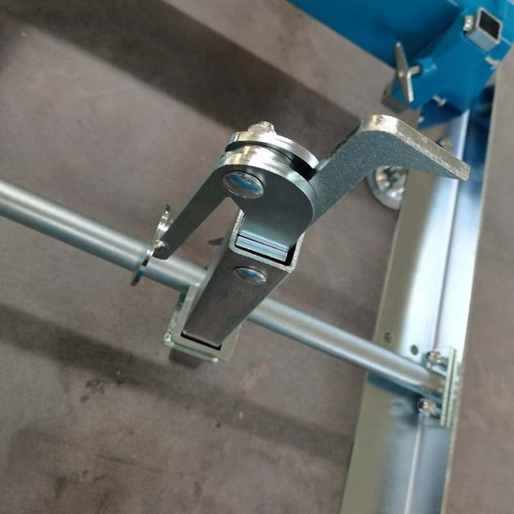 Chariot de coupe à avance manuelle équipé de pattes anti-basculement.