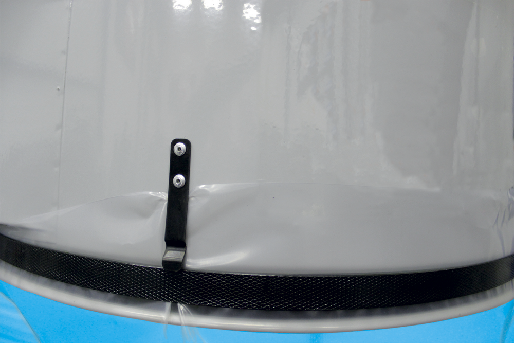 Collecteur munis d’attaches métalliques et de bandes caoutchouc pour un serrage des sacs optimum.