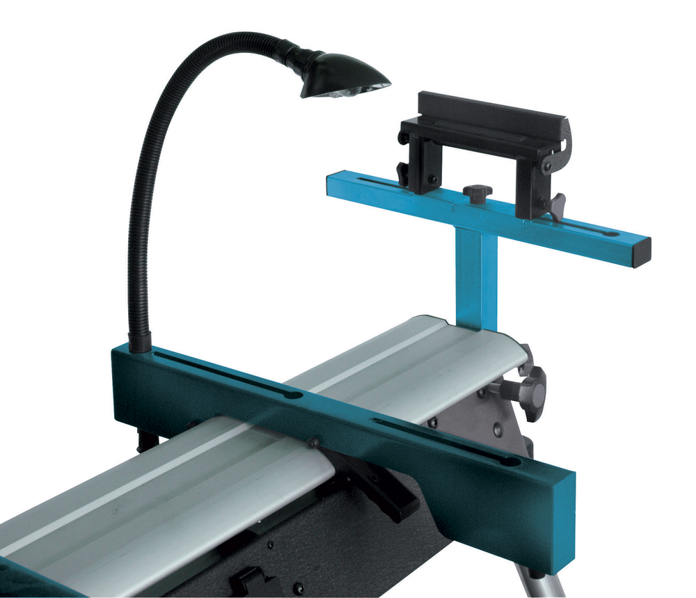 L’appareil est livré avec les 2 servantes à rouleau et leur butée, l’étau de serrage, la lampe d’appoint et son support, un jeu de 2 supports de fixation, la notice d’utilisation.