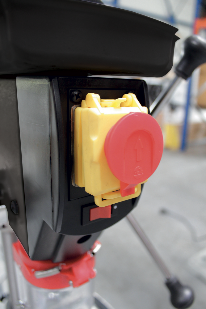 Base percée pour pouvoir fixer la machine sur un établi.