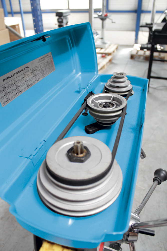 La machine est livrée avec l’arbre porte-mandrin CM2-B18, un mandrin auto-serrant B18, un chasse-cône, un étau de serrage avec mors de 100 mm, clés et notice d’utilisation.