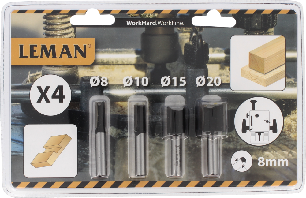 4 MECHES DE DEFONCEUSE CARBURE D8/10/15/20 Q8 BLISTER