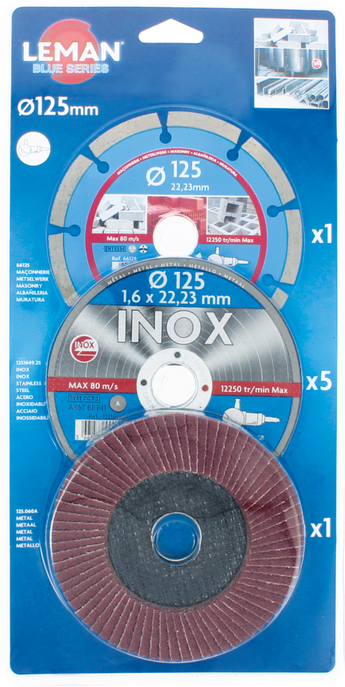 PACK MEULEUSE DISQUES Ø125 BETON – INOX – METAL – PACKMEUL.125 – LEMAN