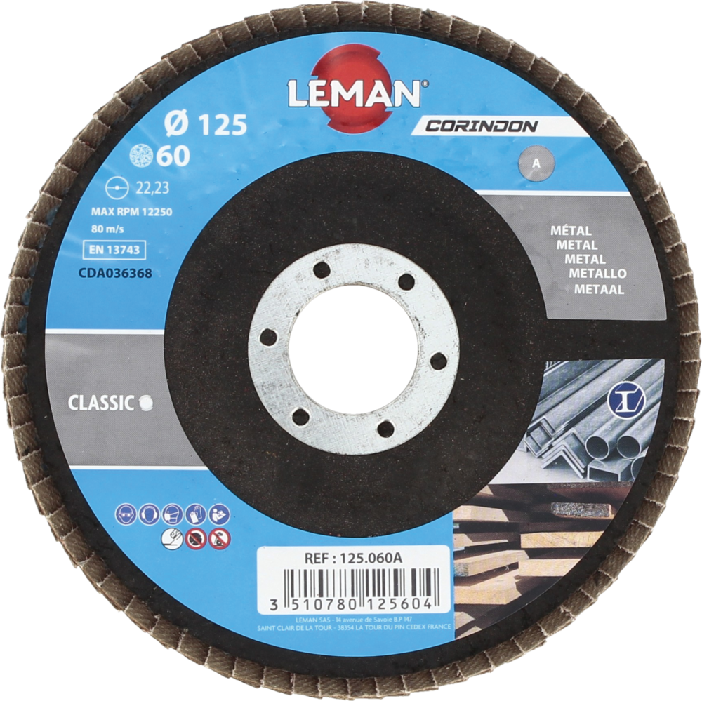 1 disque à lamelles corindon, diamètre 125, alésage 22.23mm, bois/métal (ref: 125.060A)