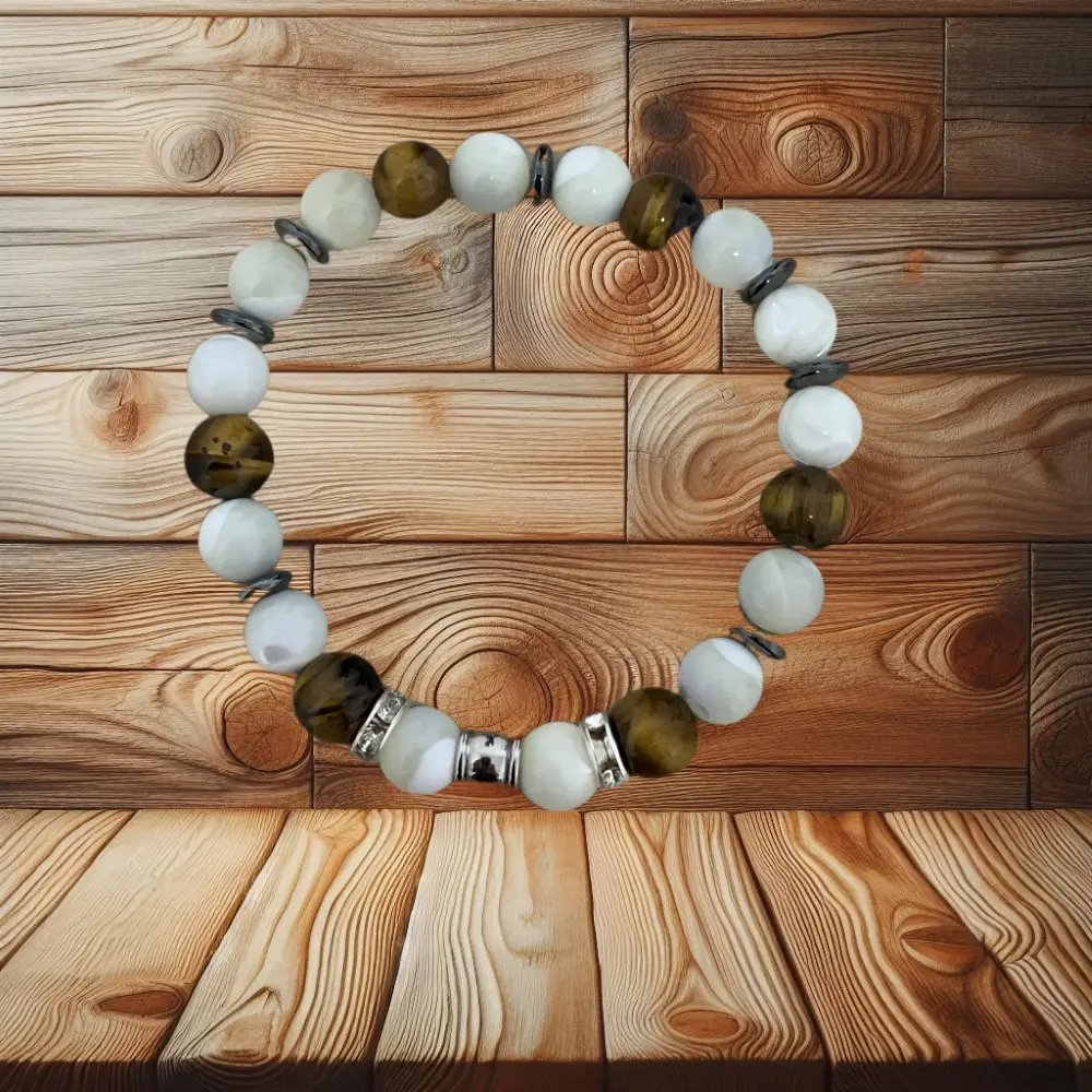 TAILLE: 20CM BRACELET FEMME « NACRE & il DE TIGRE » Ce bracelet en pierres « Nacre » et « il de Tigre » vous garantit un bien-être accru grâce aux bénéfices des pierres naturelles qui le composent. 3 tailles : 18, 19 & 20cm. DESCRIPTION Ce bracelet est composé de pierres naturelles, nacre, il de tigre, hématite, toutes certifiées, et de strass. Il est réalisé à la main en France par notre artisan créateur Flora. CARACTERISTIQUES 14 pierres Nacre, 6 pierres il de tigre, espaceurs en hématite et en strass 3 tailles disponibles : 18, 19 & 20cm Réalisation à la main en France *Bénéfices des pierres à télécharger *Certificats des pierres choisies sur demande BIENFAITS DE LA NACRE La nacre, aussi connue sous le nom de « mother of pearl » en anglais, est une substance organique-inorganique produite par certains mollusques comme les huîtres et les abalones. Elle est prisée non seulement pour sa beauté irisée mais aussi pour ses bienfaits en lithothérapie et ses usages traditionnels. Voici quelques-uns des bienfaits attribués à la nacre : Apaisement émotionnel : La nacre est souvent utilisée pour ses propriétés apaisantes. Elle est réputée pour calmer les émotions, réduire le stress et favoriser un état d’esprit serein. Promotion de la guérison : En lithothérapie, la nacre est considérée comme une pierre de guérison. Elle est censée aider à régénérer les tissus, favoriser la cicatrisation et améliorer l’état général de santé. Renforcement de l’intuition : La nacre est associée à l’intuition et à la sagesse intérieure. Elle est souvent utilisée pour stimuler l’imagination et favoriser une meilleure compréhension spirituelle. Équilibre émotionnel : La nacre est également réputée pour aider à équilibrer les émotions. Elle peut aider à apaiser les sautes d’humeur et à stabiliser les sentiments négatifs. Protection et purification : Certaines traditions considèrent la nacre comme une pierre protectrice qui peut aider à purifier l’environnement et à éloigner les énergies négatives. Amélioration des relations : En favorisant la communication et l’harmonie, la nacre est souvent utilisée pour améliorer les relations personnelles et favoriser une meilleure compréhension mutuelle. Stimulation de la créativité : La beauté irisée de la nacre est parfois associée à une stimulation de la créativité et de l’inspiration artistique. Il est important de noter que les bienfaits attribués à la nacre, comme à beaucoup de pierres et de cristaux, sont principalement basés sur des croyances traditionnelles et anecdotiques. Ils ne sont pas soutenus par des preuves scientifiques solides. Cependant, beaucoup de gens trouvent du réconfort et de la motivation en utilisant ces pierres dans le cadre de leur pratique personnelle de bien-être. Si vous choisissez d’utiliser la nacre pour ses bienfaits potentiels, il est conseillé de le faire en complément des approches médicales et thérapeutiques conventionnelles. BIENFAITS DE LIL DE TIGRE La pierre Oeil de tigre est souvent utilisée en lithothérapie, une pratique qui suppose que certaines pierres et certains cristaux peuvent offrir des bénéfices pour la santé et le bien-être. Cependant, il est important de noter que ces croyances ne sont pas soutenues par la médecine conventionnelle. Voici quelques-uns des bénéfices pour la santé traditionnellement associés à l’Oeil de tigre : Réduction du stress et de l’anxiété : On dit souvent que l’Oeil de tigre aide à calmer l’esprit, réduire le stress et l’anxiété et favoriser un sentiment de paix intérieure. Amélioration de la confiance en soi : Cette pierre est censée renforcer la confiance en soi et l’estime de soi, en aidant à l’équilibre émotionnel et en encourageant une vision plus positive de la vie. Protection contre les énergies négatives : Beaucoup croient que lOeil de tigre protège contre les énergies négatives et les influences extérieures néfastes. Renforcement de la concentration et de la clarté mentale : LOeil de tigre est souvent utilisé pour améliorer la concentration, la clarté mentale et la prise de décision, ce qui le rend populaire parmi les étudiants et les professionnels. Harmonisation du chakra du plexus solaire : Dans les pratiques énergétiques, lOeil de tigre est souvent associé au chakra du plexus solaire, le centre de la force personnelle et de la volonté. Soutien dans la réalisation des objectifs : On croit que cette pierre aide à manifester les objectifs et les rêves, en favorisant la détermination et la persévérance. Soulagement de douleurs physiques : Certaines pratiques de lithothérapie utilisent l’Oeil de tigre pour soulager diverses douleurs corporelles, bien qu’il n’y ait pas de preuve scientifique à l’appui de cette utilisation. Il est important de se rappeler que la lithothérapie est une pratique de soin non conventionnelle (PSNC) qui ne remplace pas un traitement médical. Pour tout problème de santé, il est toujours recommandé de consulter un professionnel de santé qualifié. La lithothérapie peut être utilisée comme une forme de soutien émotionnel ou spirituel et peut être un complément de qualité à la médecine allopathique.