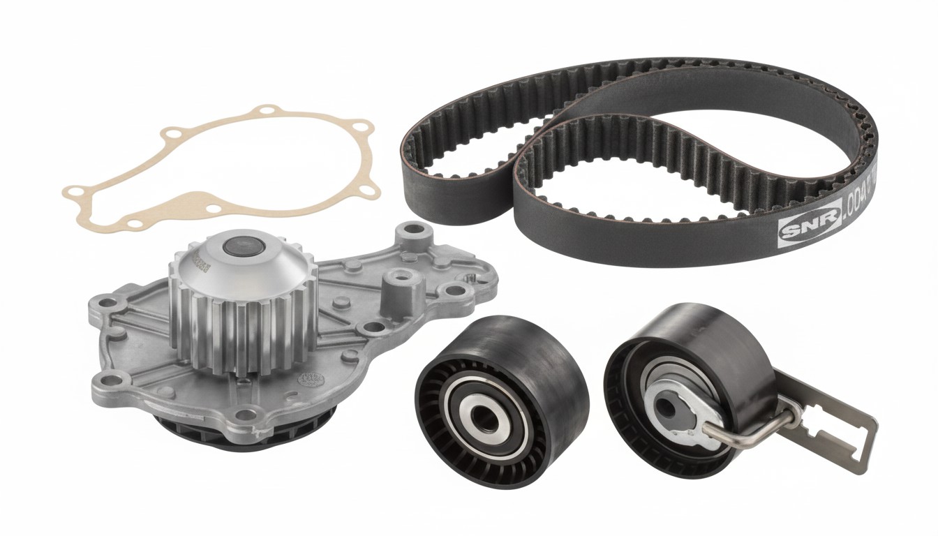 Ce kit de distribution rassemble la courroie CD41156, le galet enrouleur GE359.23, le galet tendeur GT359.43 ainsi que la pompe à eau WP013, formant un ensemble harmonisé destiné à assurer le remplacement complet et fiable de la chaîne cinématique de distribution. Conçu pour répondre aux contraintes spécifiques des moteurs diesel 1.4 TDCi, cet équipement garantit la remise en état d’un système clé de la motorisation, contribuant à une précision optimale dans la gestion des phases moteur. La courroie unique de 25 mm de largeur, équipée de 144 dents, est fabriquée selon des standards rigoureux, assurant une transmission fluide et une endurance prolongée face aux sollicitations mécaniques. Ce kit ne nécessite pas de vis supplémentaires pour la fixation, ce qui simplifie l’installation tout en conservant un niveau élevé de sécurité. La pompe à eau intégrée joue un rôle essentiel dans le contrôle thermique du moteur, évitant tout risque de surchauffe et renforçant la fiabilité générale de l’ensemble. Kit de distribution compatible avec les marques de véhicules suivantes : Ford. Cette référence s’adapte parfaitement aux modèles Fiesta V, Fusion et Fiesta V Van équipés des motorisations 1.4 TDCi, fournissant une solution entretenue et fiable qui respecte précisément les exigences constructeurs pour ces véhicules. Mécaniquement, le kit assure la synchronisation rigoureuse entre le vilebrequin et les arbres à cames par le biais de la courroie, condition indispensable pour que les soupapes s’ouvrent et se ferment au moment exact du cycle moteur. Les galets montée assurent un maintien permanent de la tension de la courroie, évitant tout glissement ou rupture qui compromettrait la performance et la sécurité moteur. Parallèlement, la pompe à eau participe à la circulation efficace du liquide de refroidissement, indispensables pour maîtriser la température moteur et prévenir tout dommage dû à une surchauffe. Cette alchimie garantit une performance stable et une longévité accrue, indispensable pour l’entretien rigoureux de votre véhicule. Fondé en 1916, le groupe NTN incarne plus d’un siècle d’excellence industrielle au service des plus grands constructeurs automobiles. À travers la marque SNR, cette exigence se prolonge sur le marché de la rechange avec des pièces strictement d’origine, conçues selon les standards de la première monte. Choisir SNR, c’est garantir précision, fiabilité et durabilité, avec une performance constante et une sécurité maîtrisée. Une référence technique qui ne suit pas le marché : elle en fixe le niveau d’exigence.