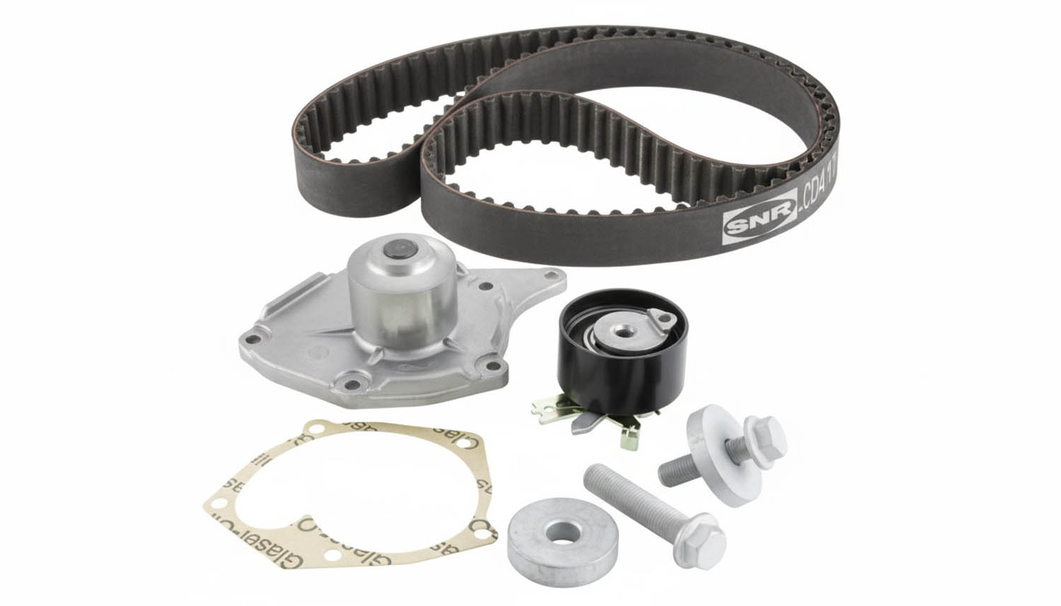 Ce kit de distribution est conçu pour offrir une solution complète et fiable pour le remplacement du système de distribution et de refroidissement. Il comprend la courroie CD41040, le galet tendeur GT355.39, la pompe à eau WP011 ainsi que les vis de fixations VIS.M12.N02, VISM14N02 et VISM8N53, indispensables pour un assemblage conforme et sécurisé. Cet assemblage garantit la restauration parfaite de la mécanique, assurant ainsi une fonctionnalité optimale du moteur. Sur le plan technique, cette courroie unique présente une largeur de 27 mm et compte 123 dents, ce qui lui confère une capacité de transmission rigoureuse et une excellente résistance à l’usure dans le temps. La qualité des composants assure une performance constante tandis que la fourniture des vis permet de respecter scrupuleusement les exigences de montage formulées par les constructeurs sans ajout superflu. Kit de distribution compatible avec les marques de véhicules suivantes : Renault et Suzuki. Cette offre s’adapte parfaitement aux véhicules équipés de motorisations 1.5 diesel, ciblant notamment les Renault Mégane II Estate dans ses différentes déclinaisons, ainsi que la gamme des Suzuki Jimny 4×4. Cette compatibilité attentive favorise un remplacement sans compromis, en phase avec les spécificités propres à chaque véhicule. Le rôle mécanique de ce kit est fondamental puisqu’il assure la synchronisation précise entre le vilebrequin et l’arbre à cames, orchestrant ainsi l’ouverture et la fermeture des soupapes au moment exact pour un cycle optimal de combustion. La pompe à eau intégrée contribue à la régulation thermique en maintenant une circulation constante du liquide de refroidissement, limitant ainsi les risques de surchauffe. Par ailleurs, la bonne tension garantie par le galet tendeur stabilise la courroie pour éviter tout glissement ou rupture, protégeant durablement l’intégrité et la fiabilité moteur. Fondé en 1916, le groupe NTN incarne plus d’un siècle d’excellence industrielle au service des plus grands constructeurs automobiles. À travers la marque SNR, cette exigence se prolonge sur le marché de la rechange avec des pièces strictement d’origine, conçues selon les standards de la première monte. Choisir SNR, c’est garantir précision, fiabilité et durabilité, avec une performance constante et une sécurité maîtrisée. Une référence technique qui ne suit pas le marché : elle en fixe le niveau d’exigence.