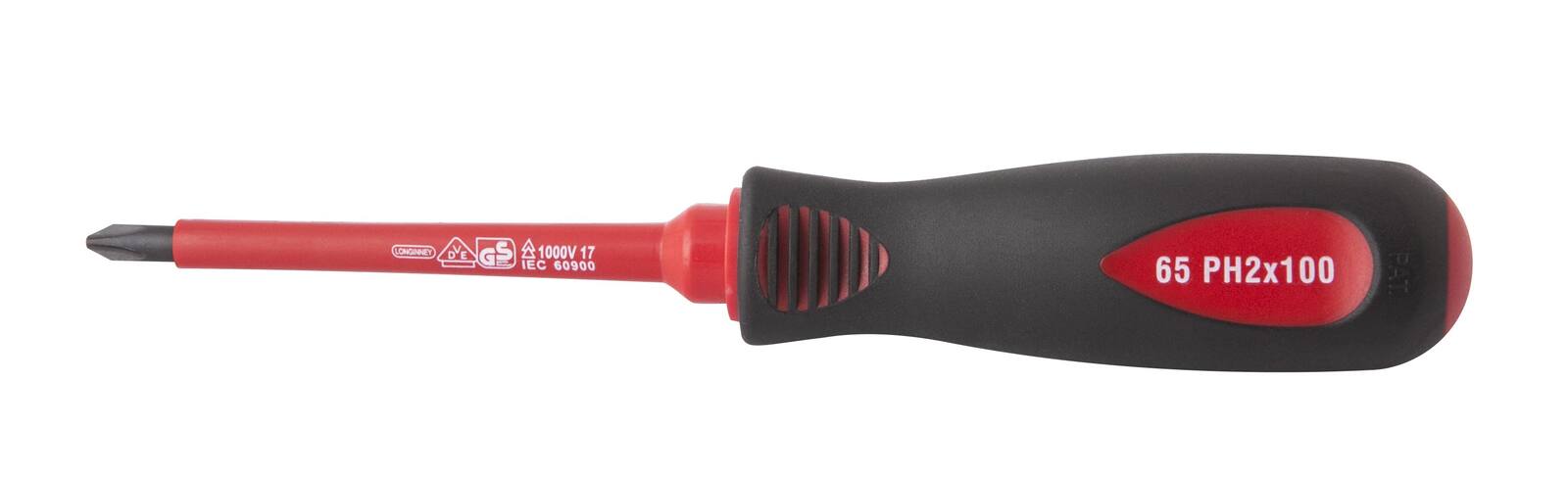 Tournevis phillips PH2x100mm isolé 1000V répondant à la norme : IEC 60900. SAV et consommables : OE 0700 COFFRET OUTILS ISOLES 1000V POUR VEHICULES HYBRIDES ET ELECTRIQUES.