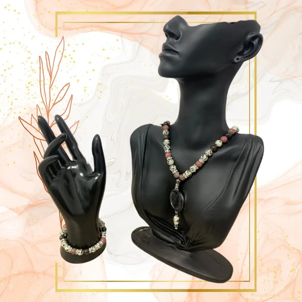 TAILLE: 19CM, TAILLE COLLIER: 42 CM, VISUEL: WAVES Pourquoi des bracelets ou des colliers anti-ondes ? Les ondes électro-magnétiques et leurs méfaits deviennent de plus en plus un sujet de santé publique. Les champs électro-magnétiques peuvent en effet avoir des conséquences sur la santé des personnes exposées. Leurs effets sur lorganisme peuvent être directs lorsquon est en contact avec lappareil émetteur dondes (ex : téléphone portable ou sans fil provoquant un échauffement des tissus biologiques) ou indirects quand on est dans une pièce où se trouvent des appareils en wifi (ex : stimulation du système nerveux, troubles visuels ). Quel que soit le type de champ électro-magnétique, les symptômes rapportés sont nombreux : asthénie physique ou musculaire voire douleurs musculaires, fatigue, pertes de mémoire, apathie contrastant avec une irritabilité anormale, troubles du sommeil, maux de tête, vertiges, malaises Dautres risques bien plus graves sont évoqués mais restent à ce jour sujets à controverse (Dossier INRS Champs électromagnétiques disponible sur demande). Dans ce contexte, le législateur sest emparé de cette problématique, et un certain nombre de recommandations ont été faites afin de protéger les salariés sur leur lieu de travail (Décret no 2016-1074 du 3 août 2016 relatif à la protection des travailleurs contre les risques dus aux champs électromagnétiques, disponible sur demande). Pour rappel, les émetteurs de champs électromagnétiques nocifs sont : – Antennes relais, compteurs Linky – Appareils wifi, appareils connectés, caméras de surveillance, box wifi – Ordinateurs, tablettes, smartphones Ce collier anti-ondes en pierres « Rhodonite », Jaspe Dalmatien », et « Hématite vous garantit une protection individuelle parfaite contre les rayonnements électromagnétiques et un bien-être accru grâce aux bénéfices des pierres naturelles qui le composent. Modèles de patchs anti-ondes : Waves, Ying Yang & Arbre de Vie Tailles : 42cm & 52cm Il est complété dun bracelet en pierres « Rhodonite » et « Jaspe Dalmatien » 3 tailles : 18, 19 & 20cm. DESCRIPTION Ce collier anti-ondes est composé dun patch de 64 modules dantennes placés dans un circuit imprimé en 8 couches formant un « Multi-Déphaseur tridimensionnel » utilisant lénergie des ondes pour produire de multiples échos permettant aux cellules vivantes de distinguer clairement et de rejeter les fréquences toxiques des ondes électromagnétiques produites par les technologies de la vie quotidienne. Il est fait de pierres naturelles, Rhodonite, Jaspe Dalmatien, hématites et strass, toutes certifiées. Il est complété par un bracelet composé de pierres naturelles, Rhodonite, Jaspe Dalmatien, toutes certifiées, et dhématites et de strass. Il est réalisé à la main en France par notre artisan créateur Flora. CARACTERISTIQUES COLLIER Acier inoxydable pour le dispositif anti-ondes, taille 25mm 22 pierres Rhodonites, 19 pierres Jaspe Dalmatien, 4 Hématites. Technologie Brevetée 3 modèles disponibles : Waves, Ying Yang & Arbre de Vie 2 tailles disponibles : 42cm & 52cm Réalisation à la main en France CARACTERISTIQUES BRACELET 8 Rhodonite, 12 Jaspe Dalmatien et 16 strass. 3 tailles disponibles : 18,19 et 20cm Pour information: Bienfaits de la Rhodonite La rhodonite est une autre pierre souvent utilisée en lithothérapie, une pratique qui attribue des propriétés curatives à certaines pierres et cristaux. Comme pour l’il de tigre et d’autres pierres, il est important de souligner que les bénéfices pour la santé associés à la rhodonite ne sont pas reconnus par la science médicale conventionnelle. Cependant, voici quelques-uns des bénéfices pour la santé traditionnellement associée à la rhodonite : Apaisement émotionnel : La rhodonite est réputée pour son pouvoir d’apaiser le stress émotionnel et l’anxiété. Elle est souvent utilisée pour favoriser l’équilibre émotionnel et la sérénité. Guérison des blessures émotionnelles : Cette pierre est dite efficace pour aider à guérir les blessures émotionnelles, notamment celles liées au traumatisme ou à la peine. Amélioration de l’estime de soi : La rhodonite est censée renforcer l’estime de soi et la confiance, aidant à reconnaître ses propres talents et capacités. Favoriser le pardon et la réconciliation : Elle est souvent utilisée pour encourager le pardon et faciliter la réconciliation, que ce soit avec soi-même ou avec les autres. Équilibrage des émotions : La rhodonite est parfois utilisée pour aider à équilibrer les émotions, en apportant un sentiment de calme et de stabilité. Soutien pendant les périodes de changement : Cette pierre est considérée comme aidant à naviguer à travers les changements difficiles de la vie, en fournissant soutien et endurance. Stimulation de la compassion et de l’altruisme : La rhodonite est censée encourager des sentiments de compassion et d’altruisme, renforçant le désir d’aider les autres. Harmonisation du chakra du cur : Dans les pratiques énergétiques, la rhodonite est souvent associée au chakra du cur, aidant à ouvrir et à équilibrer ce centre énergétique. Bienfaits du Jaspe Dalmatien Le Jaspe Dalmatien, aussi connu sous le nom de Jaspe Dalmate, est une pierre ornementale caractérisée par sa base blanche ou gris clair avec des taches noires ou brunes, ressemblant au pelage d’un chien Dalmatien. Comme pour d’autres pierres utilisées en lithothérapie, il est important de noter que les bénéfices pour la santé attribués au Jaspe Dalmatien ne sont pas appuyés par des preuves scientifiques conventionnelles. Ces croyances relèvent plutôt de la tradition et du symbolisme. Voici quelques-uns des bénéfices pour la santé traditionnellement associés au Jaspe Dalmatien : Amélioration de l’équilibre émotionnel : Le Jaspe Dalmatien est souvent utilisé pour apporter un sentiment d