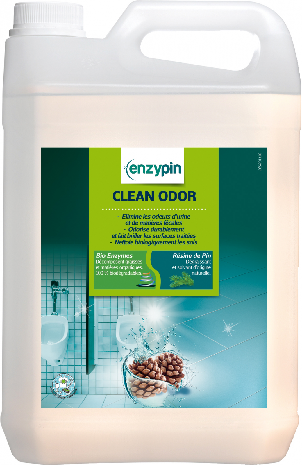 Enzypin clean odor pret a l’emploi / 5 litres Enzypin clean odor pret a l’emploi / 5 litres ENZYPIN Clean Odor est un odorisant enzymatique très concentré. Une seule pulvérisation permet une odorisation puissante et rémanente. S’utilise directement dans la cuvette des toilettes et des urinoirs après chaque passage ou après le nettoyage. Les ingrédients ont été particulièrement choisis pour leur profil environnemental et sécuritaire : tous les composants sont biodégradables selon la norme OCDE 301, 93 % des ingrédients sont d’origine naturelle et la formule ne présente ni phrase de rique ni icône de danger.