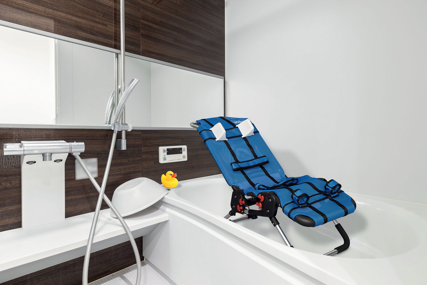 Notre transat de bain Anchor offre un positionnement sécurisant et confortable pour l’enfant pendant le bain. Sa structure en aluminium est capitonnée de tissu mesh confortable et à séchage rapide. Il dispose de 4 réglages d’inclinaison sur le dossier (0° / 30° / 60° et 90°) et 4 inclinaisons pour le repose-jambes. Équipé de 2 ceintures de sécurité, de supports de tête latéraux et de passants pour les jambes, il assure une hauteur d’assise réglable. Le transat est doté de pieds antidérapants pour sécuriser la toilette dans une baignoire. Longueur totale : 99 cm, largeur hors-tout : 36,2 cm, profondeur d’assise réglable de 26 à 32,5 cm, hauteur d’assise réglable en 4 positions : 14,3 / 26,2 / 35 / 37,5 cm. Poids : 5,2 kg. Taille : X-Small.