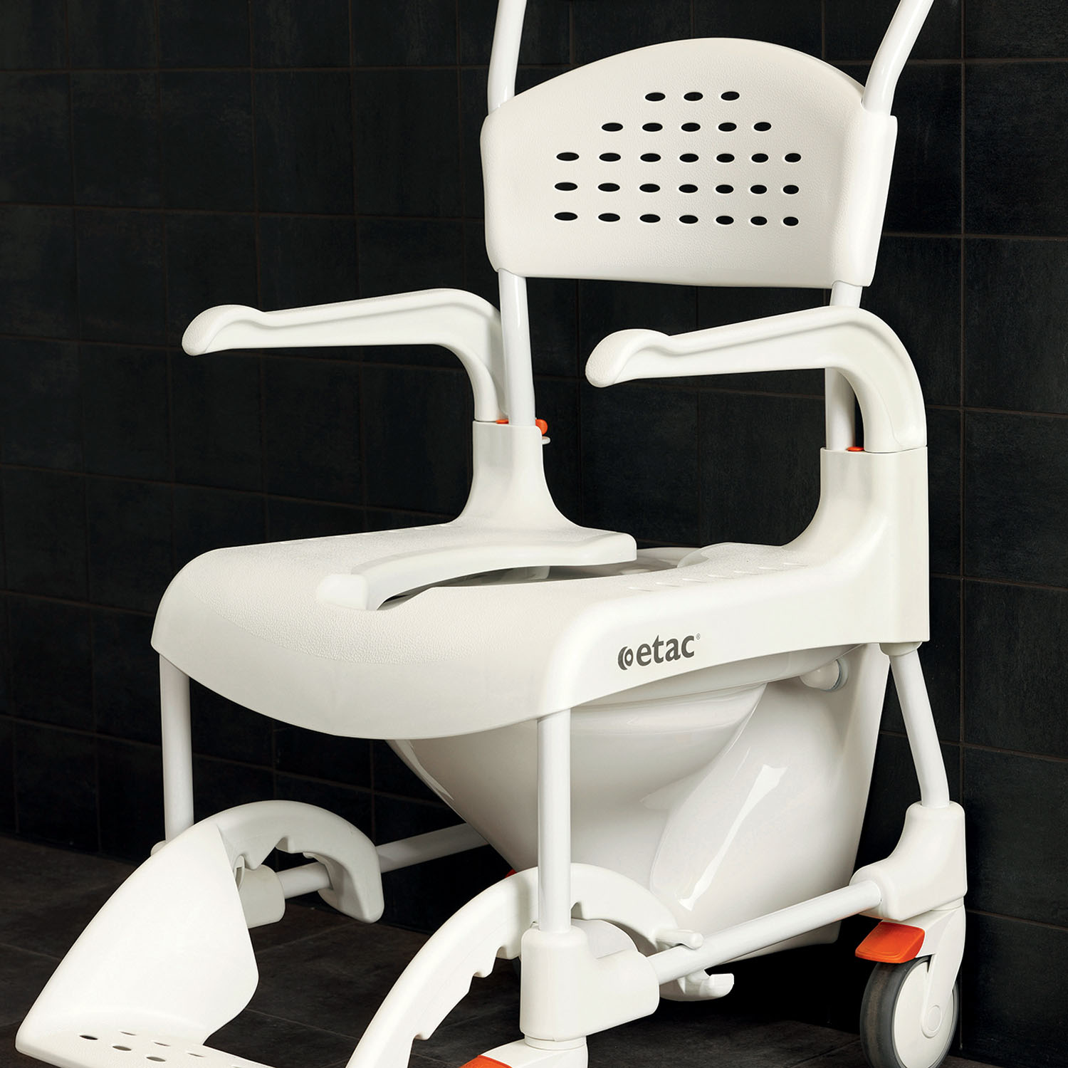 La chaise Clean reste la chaise adaptée aux collectivités grâce à sa structure en acier sans soudure traité epoxy blanc, qui lui garantit une rigidité optimale et une absence de corrosion dans le temps. Elle s’utilise en version douche, ou en version fauteuil de toilettes positionnable au-dessus d’une cuvette, même surélevée. Accoudoirs escamotables et amovibles. Repose-pieds escamotable et réglable en hauteur 4 positions. 2 roues à freins. Dimensions hors-tout : larg. 52 x prof. 55 (repose-pieds non escamoté) x haut. suivant modèle. Dimensions assise : larg. 43,5 x prof. 43,5 x haut. suivant modèle. Hauteur sous siège : 44,5 ou 49,5 cm. Poids 14 kg Résistance : 130 kg Existe : – En modèle à hauteur d’assise fixe 49 ou 55,5 cm avec 2 freins coloris vert lagon ou blanc – En modèle à hauteur d’assise fixe 49 ou 55 cm avec 4 freins en vert lagon uniquement – En modèle réglable en hauteur (de 47,5 à 60 cm) blanc – En version grandes roues (haut. d’assise 55 x larg. hors-tout 70 cm) coloris vert lagon.
