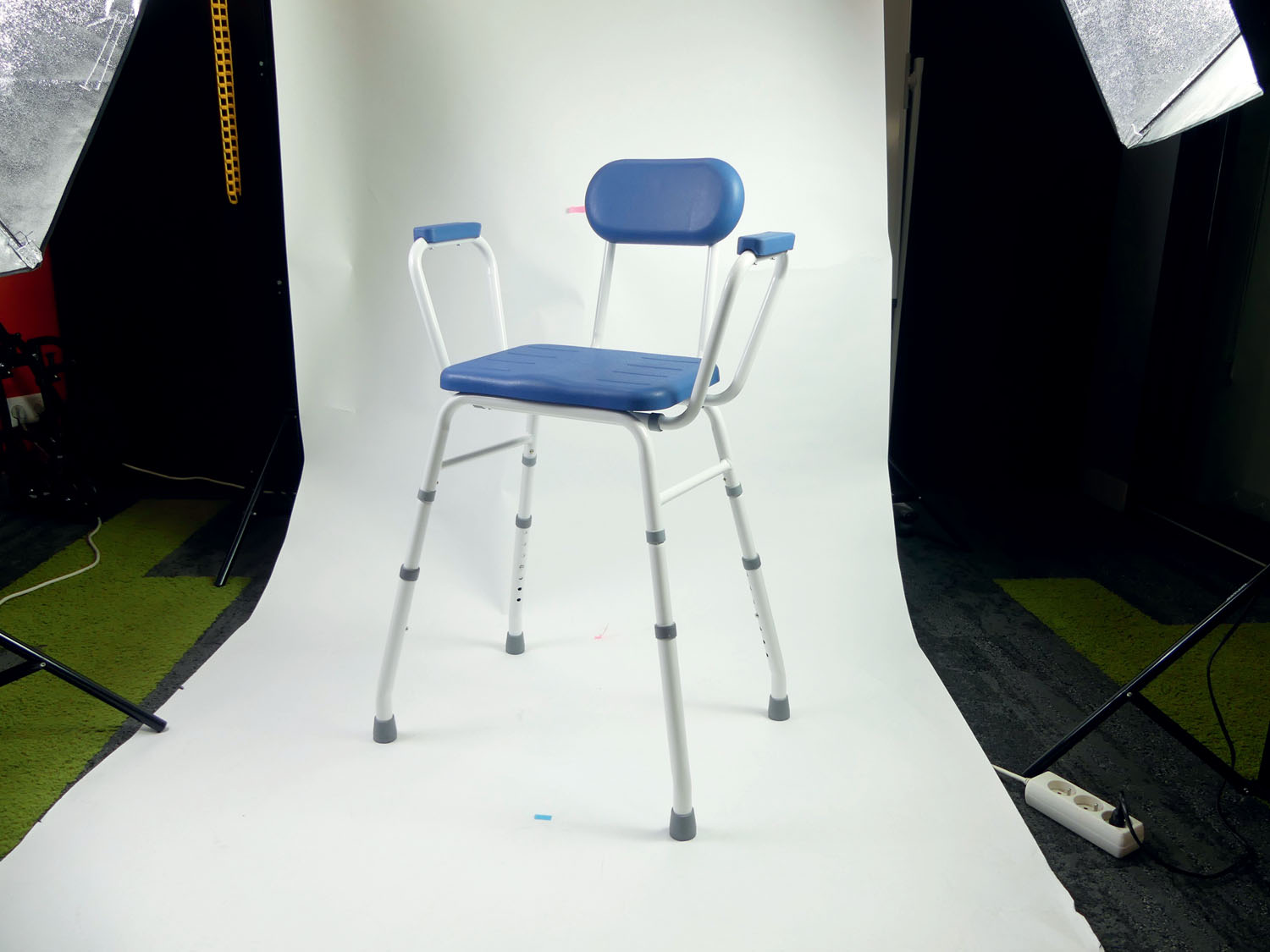 Ces sièges très confortables vous permettent d’avoir une assise légèrement inclinée vers l’avant, très pratique pour se relever plus facilement. Elle est fabriquée à base de mousse très facile à nettoyer. Structure acier epoxy renforcée. 2 modèles disponibles : – Chaise : coloris bleu lagon ou gris anthracite – Tabouret : coloris bleu lagon uniquement Dimensions hors-tout : larg. 60/65 x prof. 41/45 x haut. 84/99cm. Dimensions assise : larg. 35,5 x prof. 32,5 x haut. 52/66,5 cm Largeur entre accoudoirs 55 cm Hauteur entre les accoudoirs et l’assise : 18,5 cm Hauteur du dossier : 30 cm Poids : 4,7 kg pour le modèle tabouret et 5,3 pour les modèles chaise Poids supporté : 160 kg