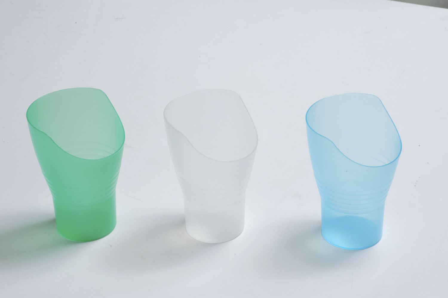 Verre à découpe nasale Ergo, conçu pour boire en limitant les gestes amples. Sa large découpe spéciale permet de garder la tête droite. Verre anatomique et crénelé pour une meilleure prise en main. Fabriqué en polypropyl