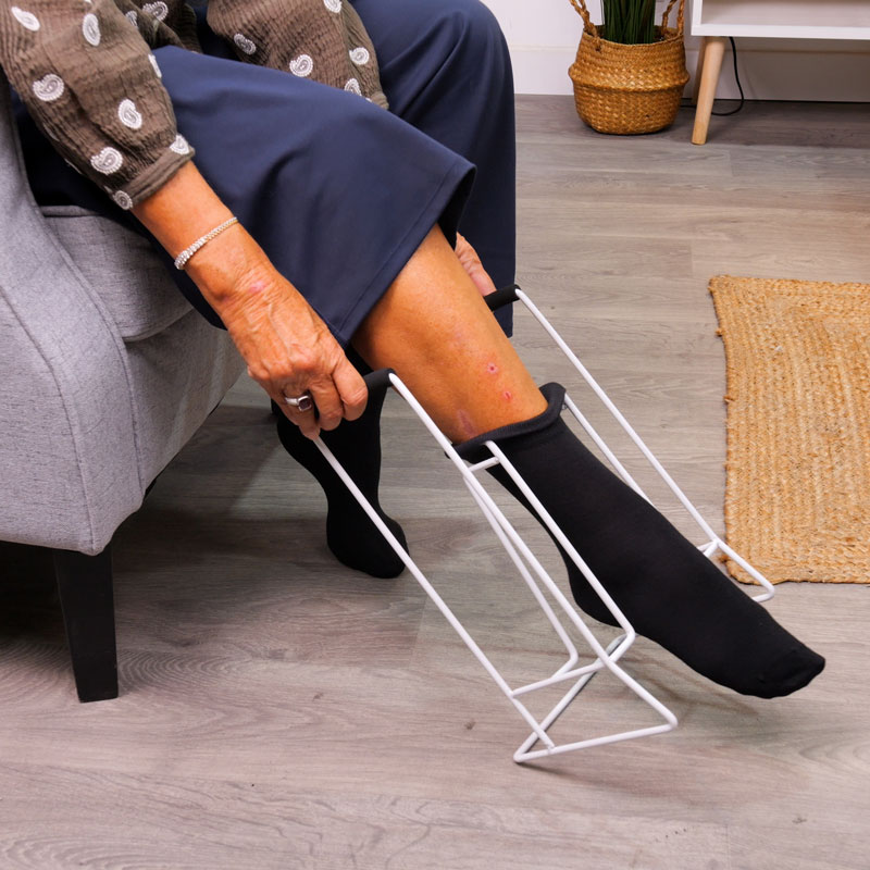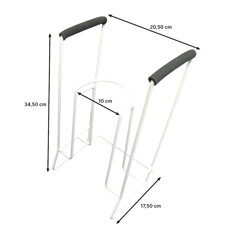 Notre enfile-bas Classic permet denfiler avec moins deffort et de contorsions vos chaussettes ou bas de contention. Il suffit de lenfiler dabord sur le cadre métallique jusquau bout, dinsérer votre bout de pied et de tirer sur les poignées pour remonter lensemble le long de votre jambe. Cadre métallique peint époxy blanc. Dimensions : larg. 20,5 x prof. 17,5 x haut. 34,5 cm. Diamètre utile 10 cm. Poids 800 g