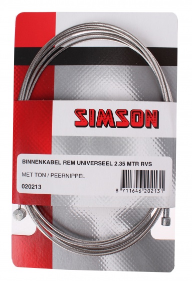 Simson frein de câble interne spécifications: Couleur: Argent Matériel: Acier inoxydable Position: arrière Longueur: 2250 mm Epaisseur: 1,5 mm mamelon Type: mamelon poire et tonnippel Type de produit: 020 213
