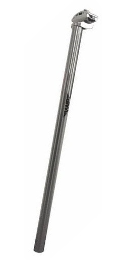 Tige de siège fixe en aluminium argenté de VWP. Spécifications : Couleur : argent Matériau : aluminium Suspension : non Diamètre : 26,8 mm Longueur : 600 mm Poids : 525 grammes Type de vélo : ATB/MTB, BMX, Route & Tour bikes